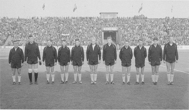 Bovenste rij van links naar rechts: Toon Brusselers, trainer Ben Tap, Sjef Weber, Daan Netten, Gerard Schuurman, Teun van Pelt, Wim Wisse.