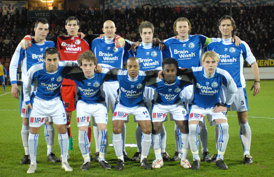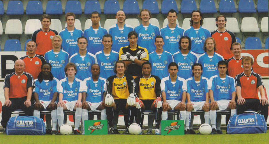Bovenste rij van links naar rechts: Rob Bello, Jordens Peters, Diego Karg, Arjan Ebbinge, Paul Beekmans, Koen van de Biezen, Peter van den Berg, Rob Westelaken.