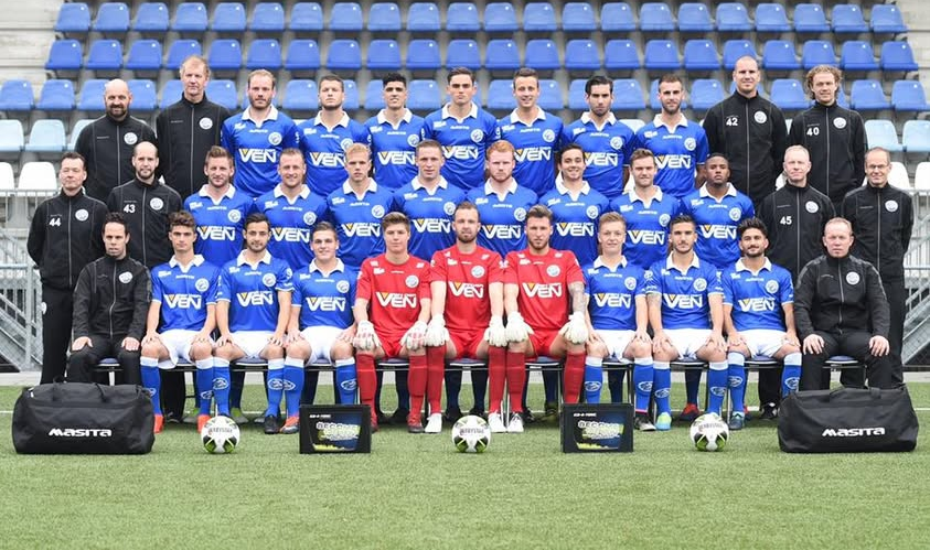Bovenste rij van links naar rechts: Frank van Daal, Jan van Grinsven, Danny Verbeek, Evren Korkmaz, Niek Vossebelt, Oussama Bouyaghlafen, Sam Kersten, Ben Santermans, Bart Biemans, Luuk Brouwers, John Vos, Niels Ton.